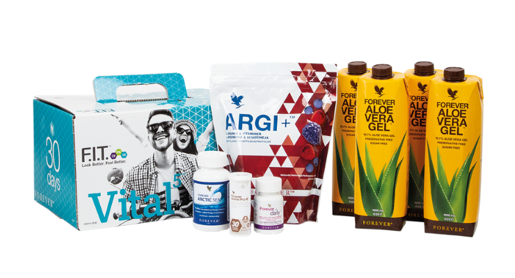 - Vital5 Forever Aloe Vera Gel– 4L Aloe vera gel, Forever active probiotic, Forever argi+, Forever arctic sea i Forever daily
